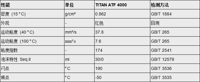 福斯泰坦自動傳動液 ATF 4000 屬多用途型,高負荷下能維持穩(wěn)定的性能。符合 DEXRON III 規(guī)格以及之前的 DEXRON 規(guī)格。