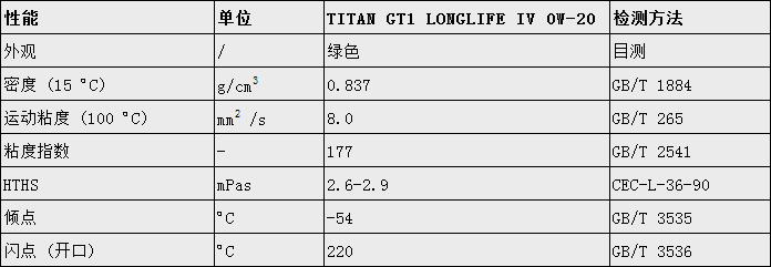 TITAN GT1 LONGLIFE IV 0W-20 是低粘度機(jī)油領(lǐng)域的創(chuàng)新產(chǎn)品。獨(dú)特的配方,全合成基礎(chǔ)油與先進(jìn)的福斯添加劑技術(shù)相結(jié)合而成的高性能機(jī)油,絕對(duì)是頂級(jí)的路線。TITAN GT1 LONGLIFE IV 0W-20 的特殊組成成分,在 M111 FE 測(cè)試中節(jié)省了4%以上的燃料,這也有助于減少二氧化碳的排放。