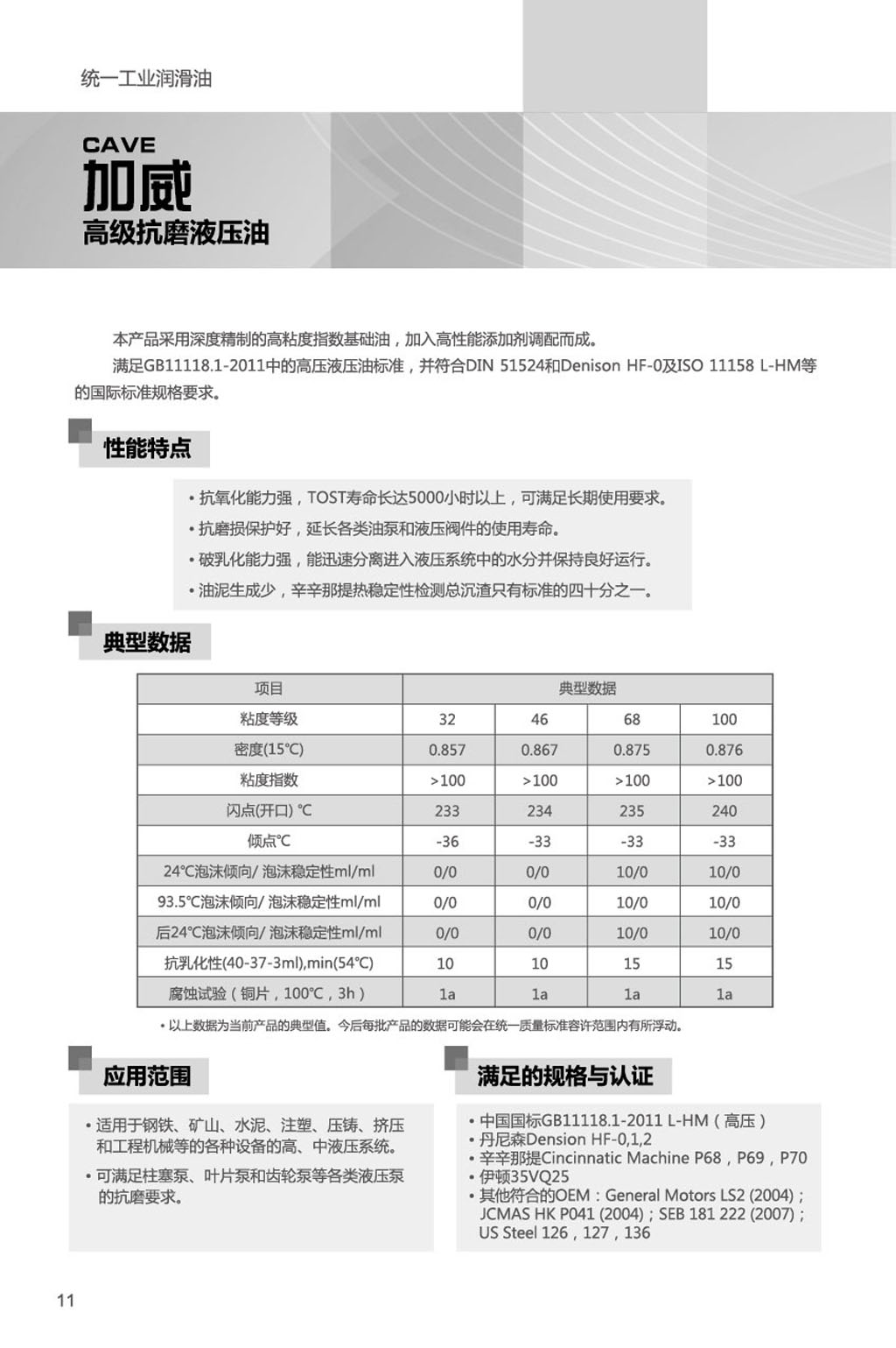 滿足規(guī)格:中國國標(biāo)GB11118.1-2011 L-HM(高壓); 德國DIN51524 part II;丹尼森Denison HF-0; ISO 11158 L-HM。