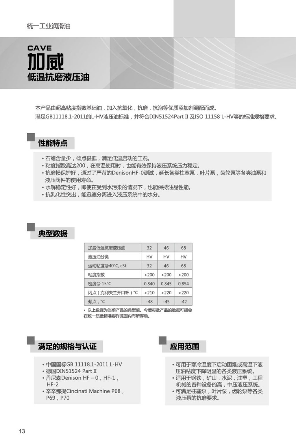 滿(mǎn)足規(guī)格:滿(mǎn)足中國(guó)國(guó)標(biāo)GB11118.1-2011 L-HV(高壓),并符合DIN 51524 Part II 及ISO 11158 L-HV等的標(biāo)準(zhǔn)規(guī)格要求。